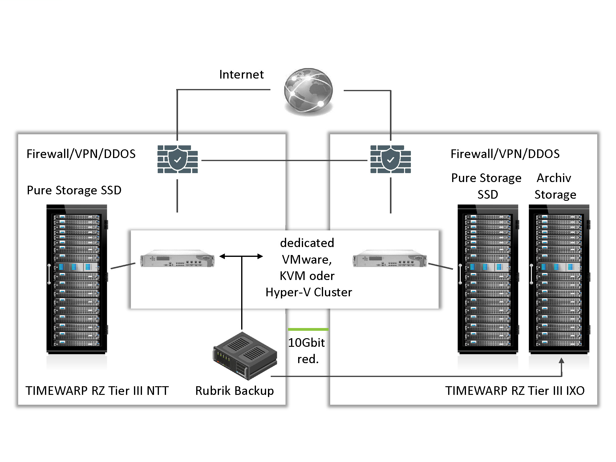 Daten werden auf einer Backup Storage in einem 2. Rechenzentrum (Entfernung 13 km)